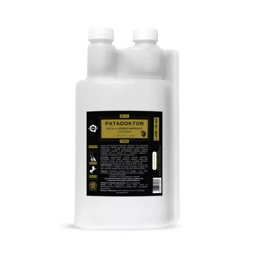 A PATADOKTOR vitaminokat (A, D3, E, B-komplex), nyomelemeket (mangán, cink, réz, kobalt), DL-metionint és gondosan válogatott gyógynövényeket tartalmazó folyékony kiegészítő takarmány.